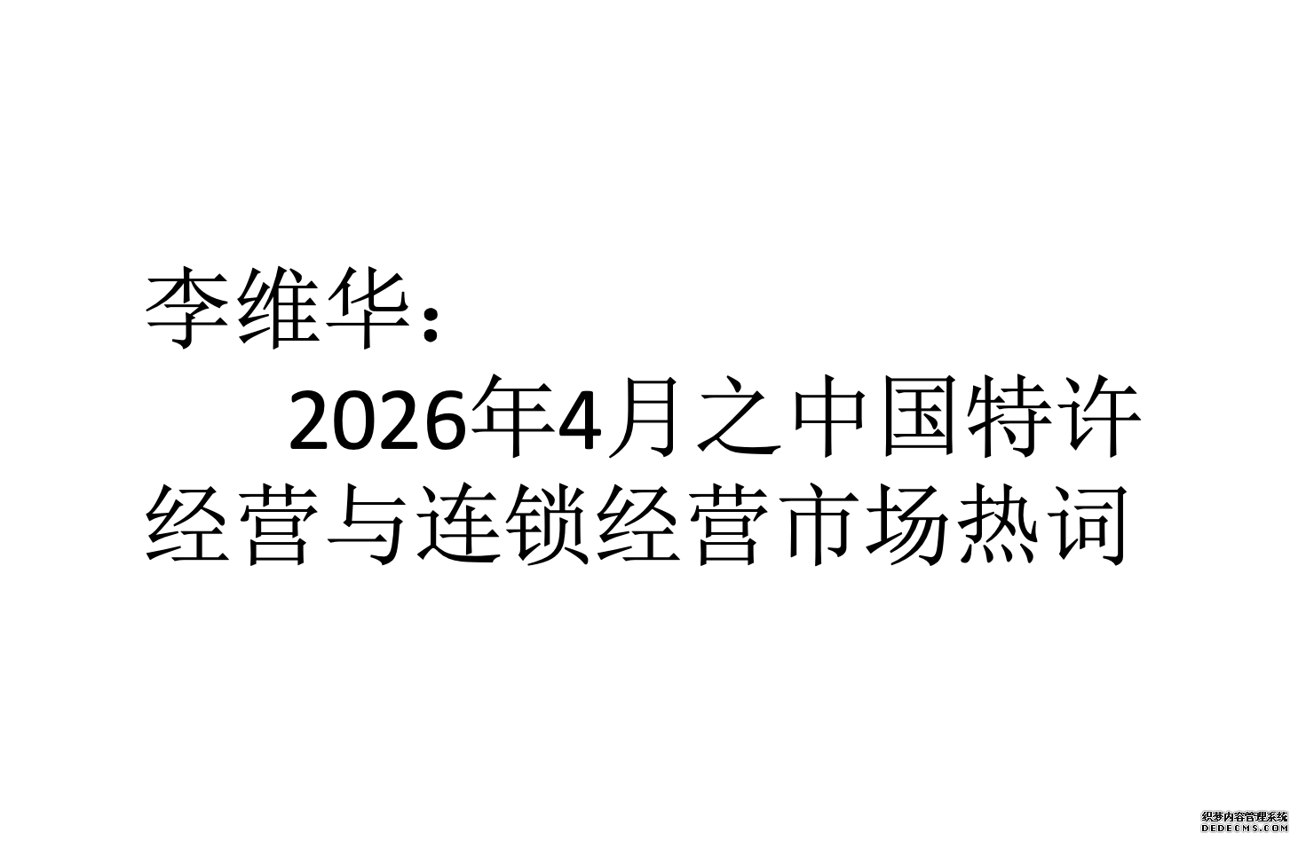 【李维华:2026年4月之中国特许经营与连锁经营市场热词】