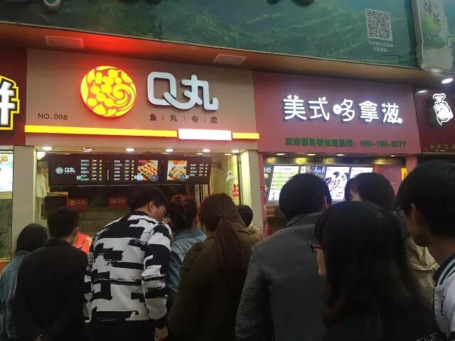 Q丸鱼丸专卖店虽然是低调的开起来了,但是现场的火爆程度并不低调。这家坐落在合肥淮河路步行街的小吃店,在美食扎堆的步行街上显得格外抢眼。除了身穿红色工作服的靓丽服务员MM,排队购买的食客一副急不可耐的样子更是让人好奇心大发。Q丸在这里火爆到什么程度?听服务员小妹说,一天卖出上千份不是问题。