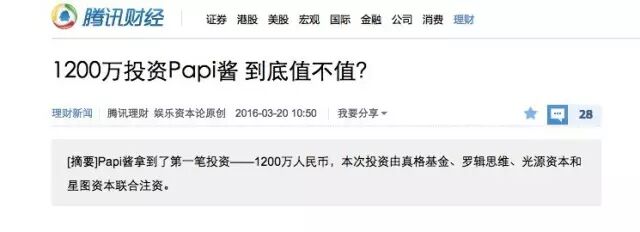 papi酱获1200万投资这事儿最近在社交媒体上火爆异常,这位集“美貌与才华于一身”的女子成为了媒体风暴的焦点,可是papi酱真的价值1200万吗?就在大家议论纷纷,热烈讨论她的估值是否虚高的时候,另一位酷似“莫文蔚”的昔日网红二月丫头千万融资已经到账,荷枪实弹的在线下干了起来。